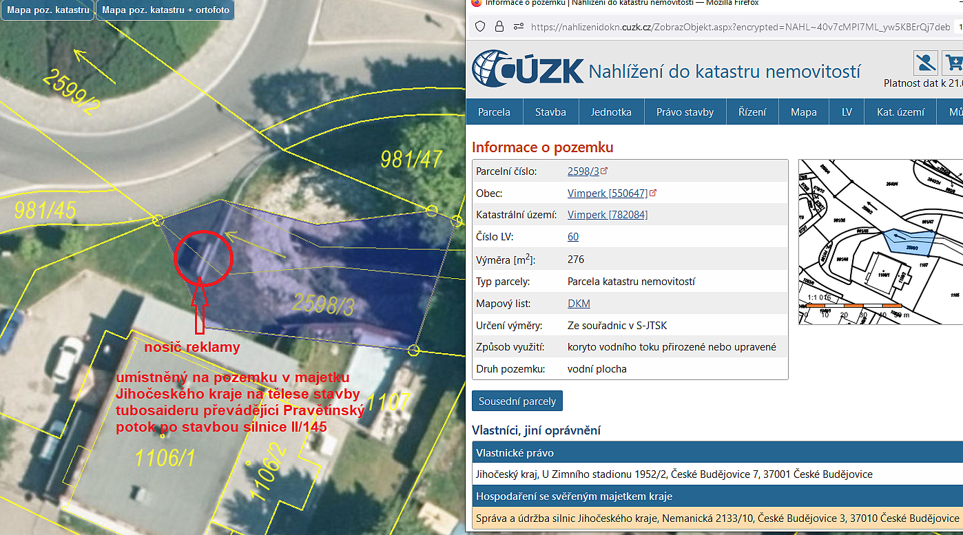 Nosič reklamy je umístněn v elektronicky střeženém areálu SÚS Jčk., středisko Vimperk, na adrese: