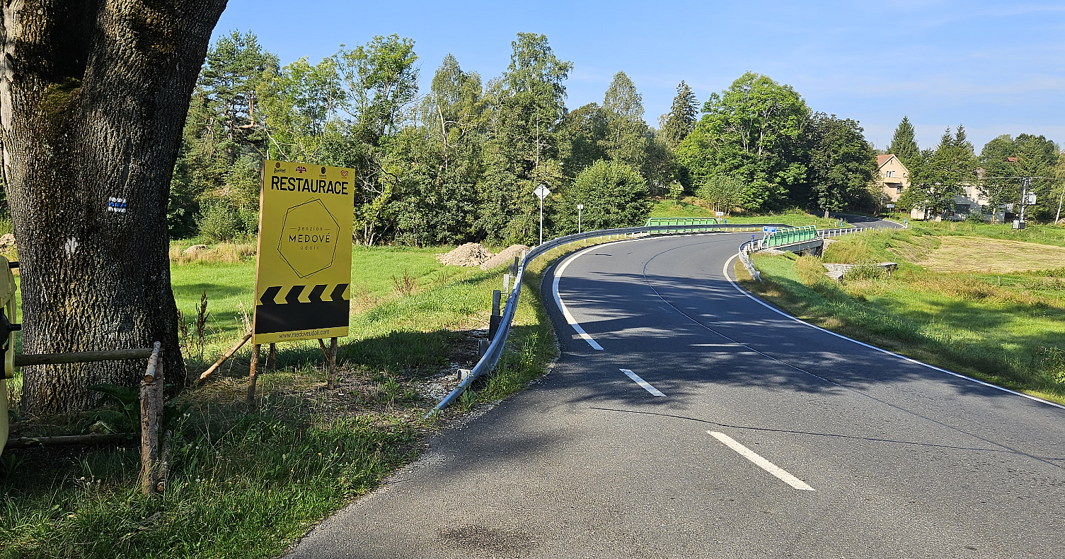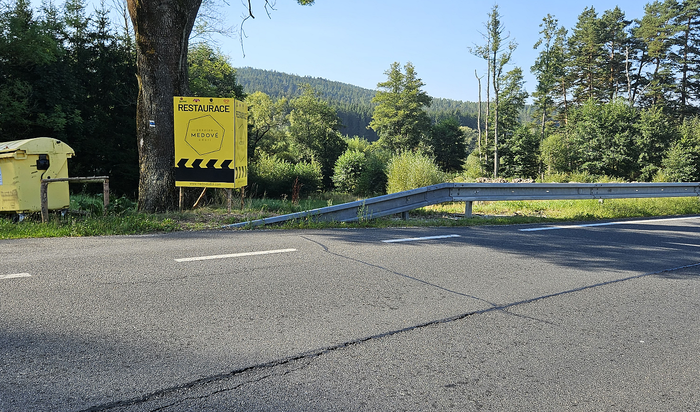 Nosič reklamy umístněný před mostem ev. č. 170-013 u obce Čábuze s textem Restaurace Medové údolí. Uložen na středisku SÚS Vimperk, Špidrova čp. 46. Vedoucí cestmistr p. David Staněk. Uložení provedeno dne 03.10.2024 v 10:00 hodin.