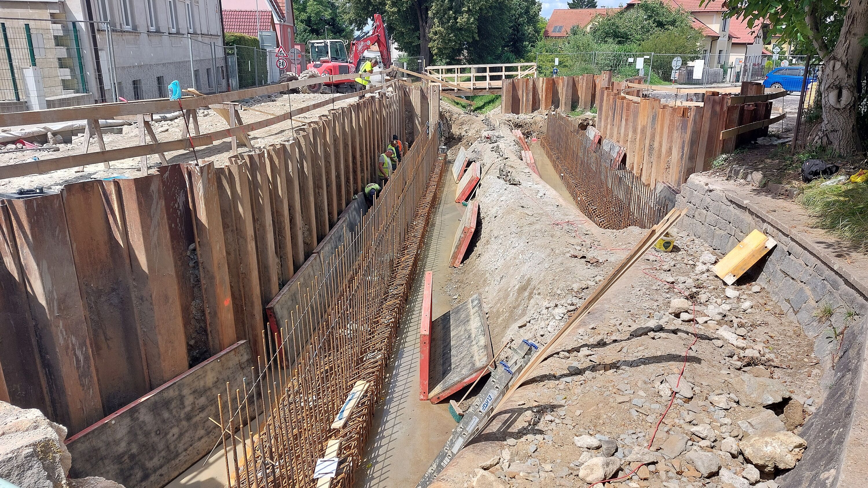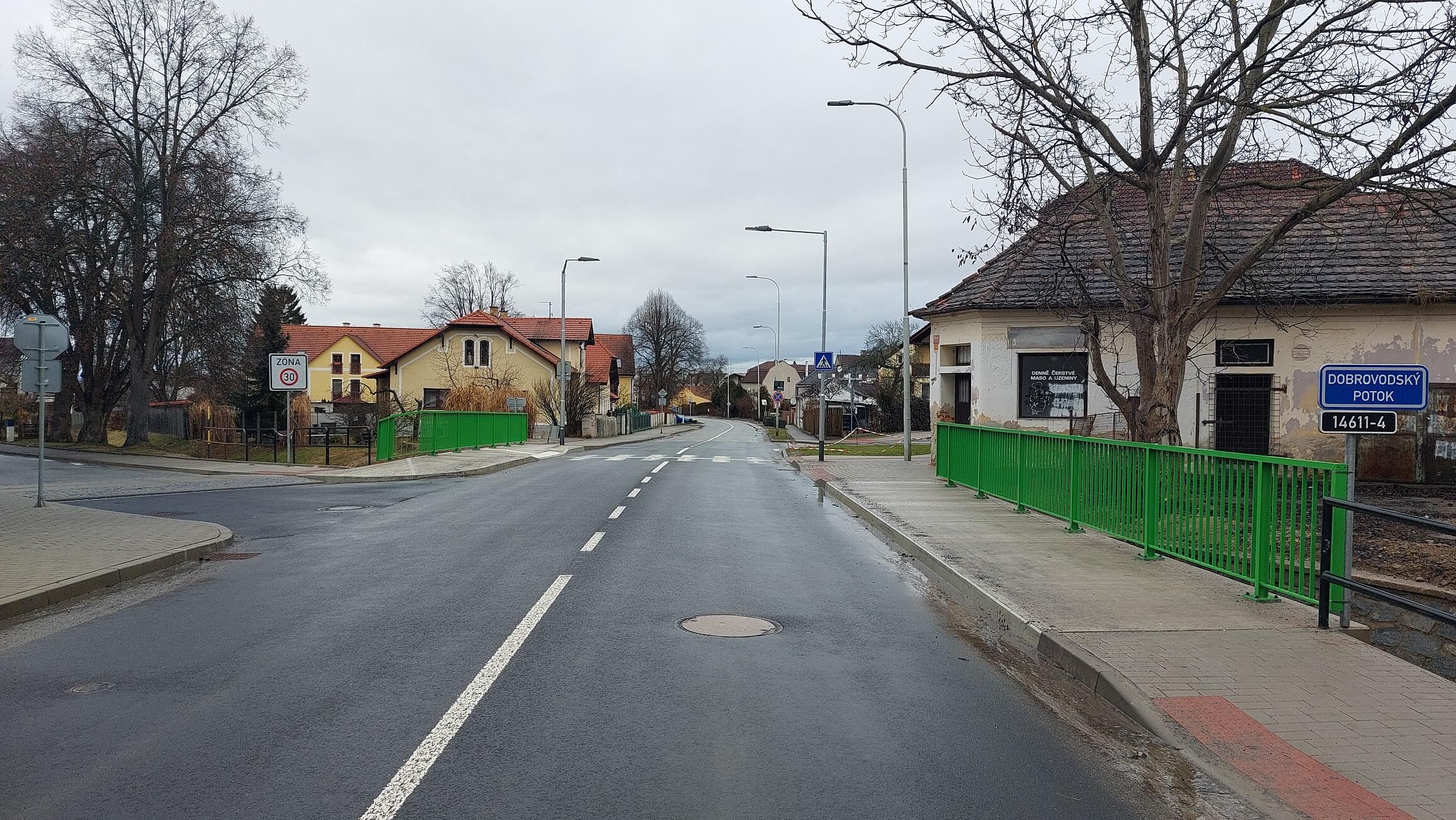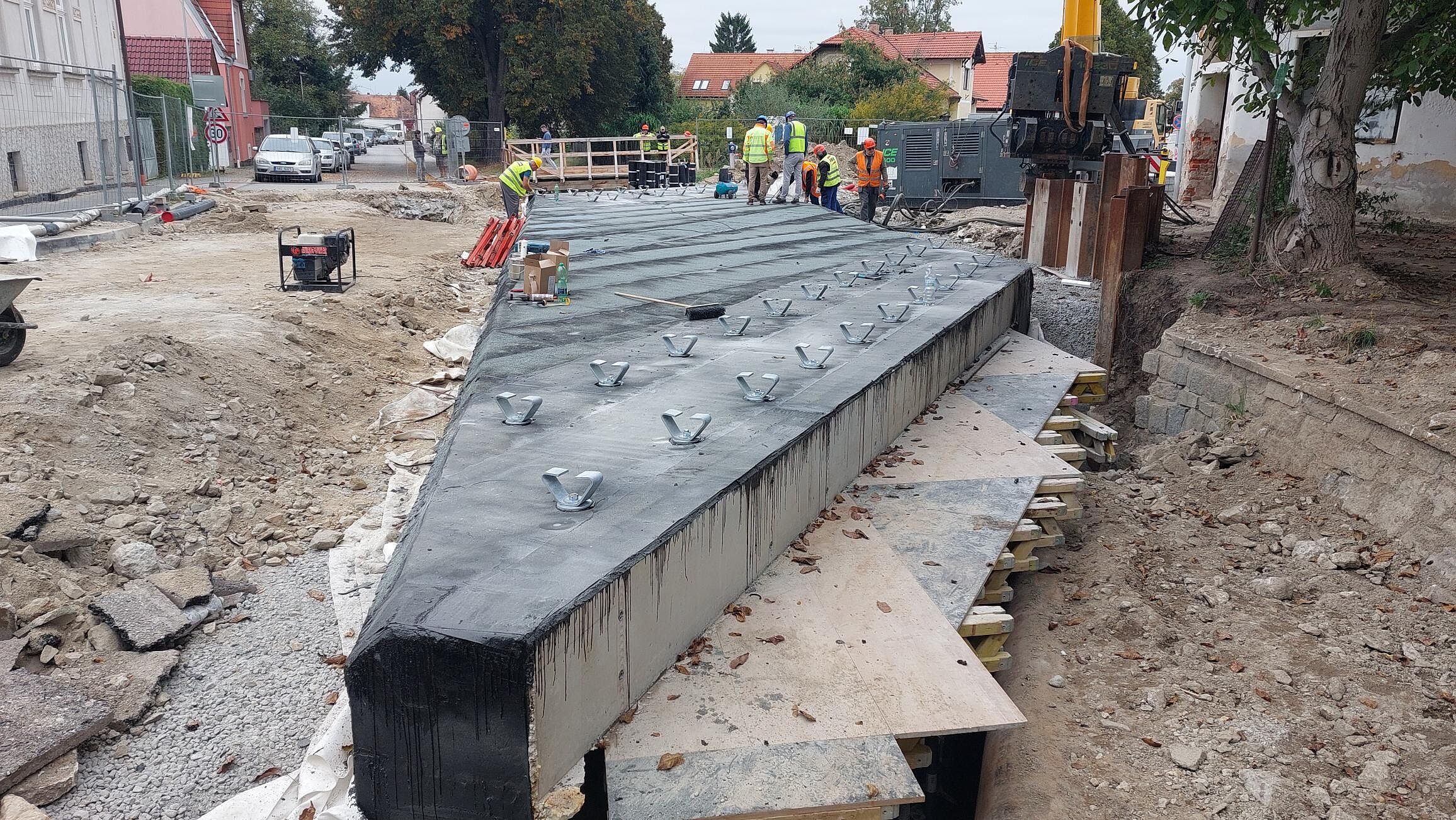 Náhrada stávajícího mostu za nový, železobetonové rámové konstrukce s oboustranným chodníkem, včetně záchytného systému a odvodnění vozovky. Součástí stavby byla přeložka vodovodního řadu, kabelu NN a VO.