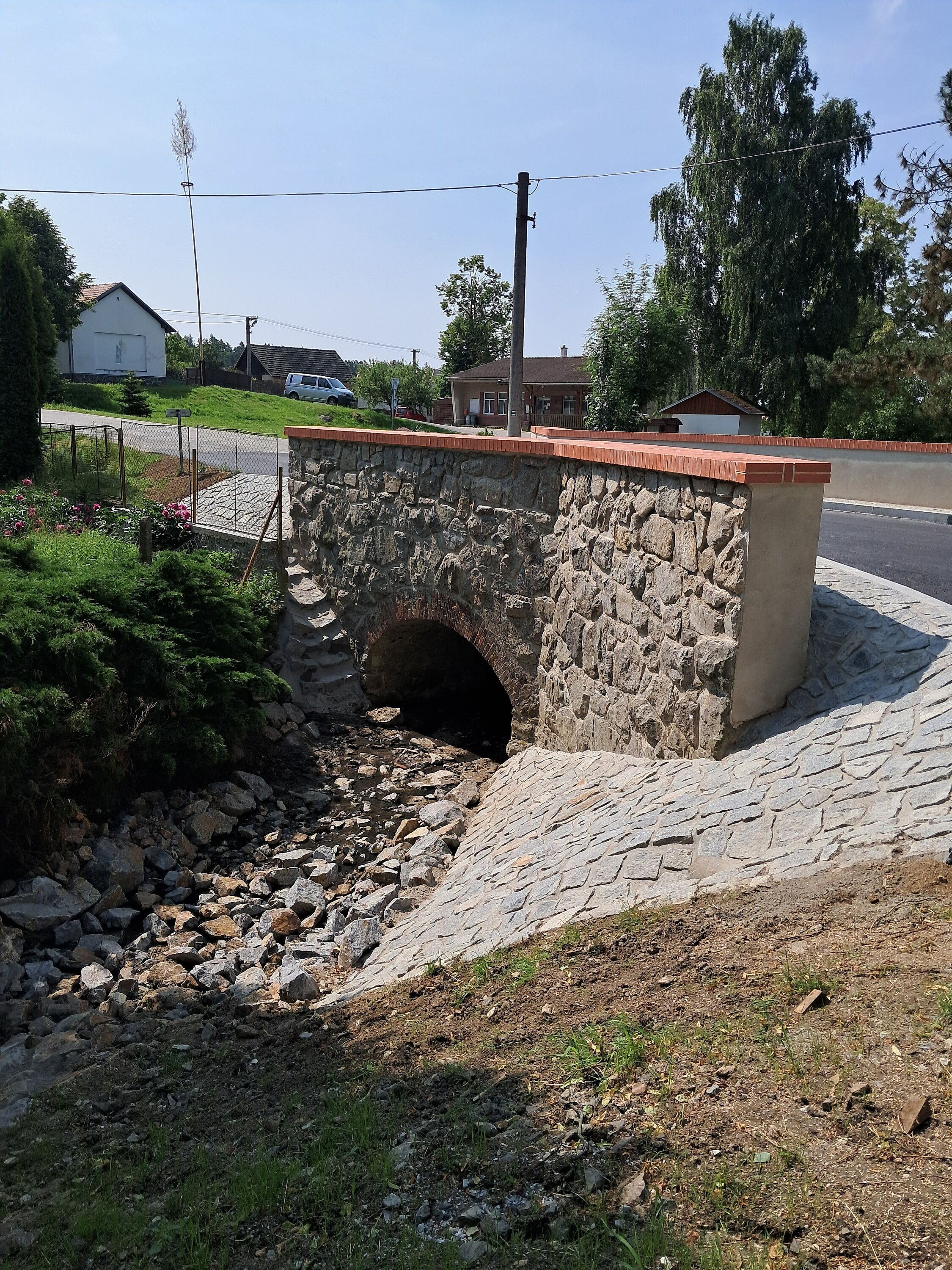 Oprava stávajícího obloukového mostu, který bude zařazen do památkové ochrany. V rámci opravy byla provedena nová železobetonové roznášecí deska, konstrukce vozovky a poprsní zdi.